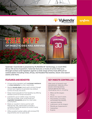 MainspringĀ® GNL insecticide for plants, guards greenhouse and nursery crops from key chewing and sucking pests, including thrips, whiteflies, aphids, caterpillars, leafminers, leaf-feeding beetles, soft scales and lacebugs. It offers reliable, extended protection as part of a preventive pest management strategy.
